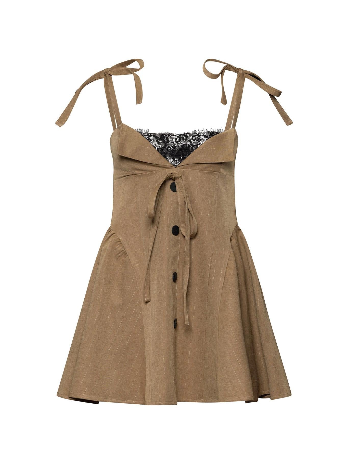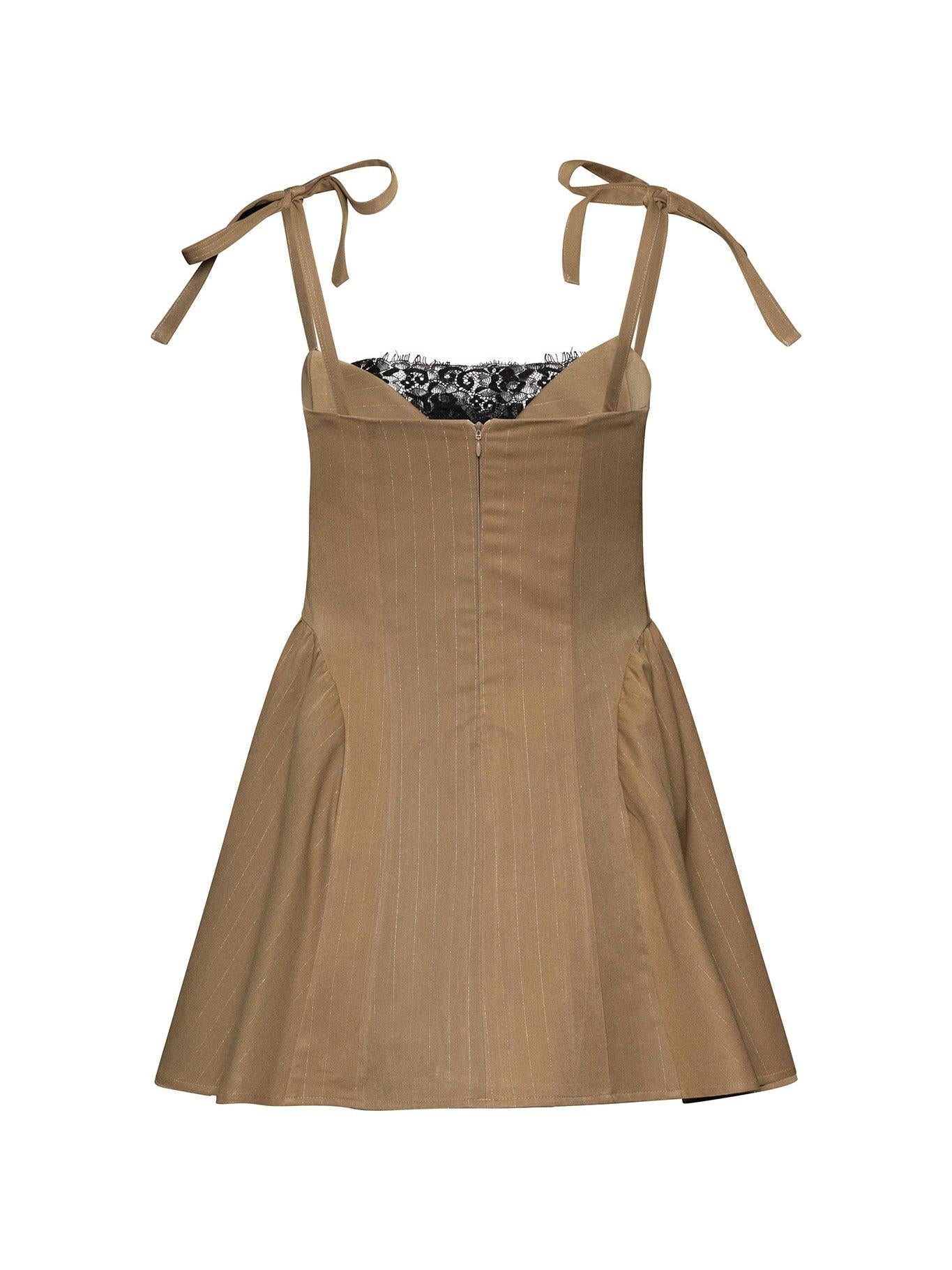 Моделът е изработен от вискоза в съчетание със студена вълна. Корсетна рокля в горната си част, която придава жентсвеност и оформя силуета. Нежна, италианска, дантела като акцент при деколтето и връзки, който се регулират. В долната си част моделът се разкроява. В зависимост от съчетанието може да бъде Вашата стрийт или елегантна визия.