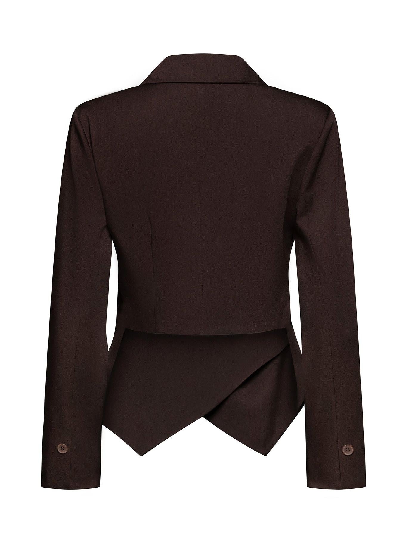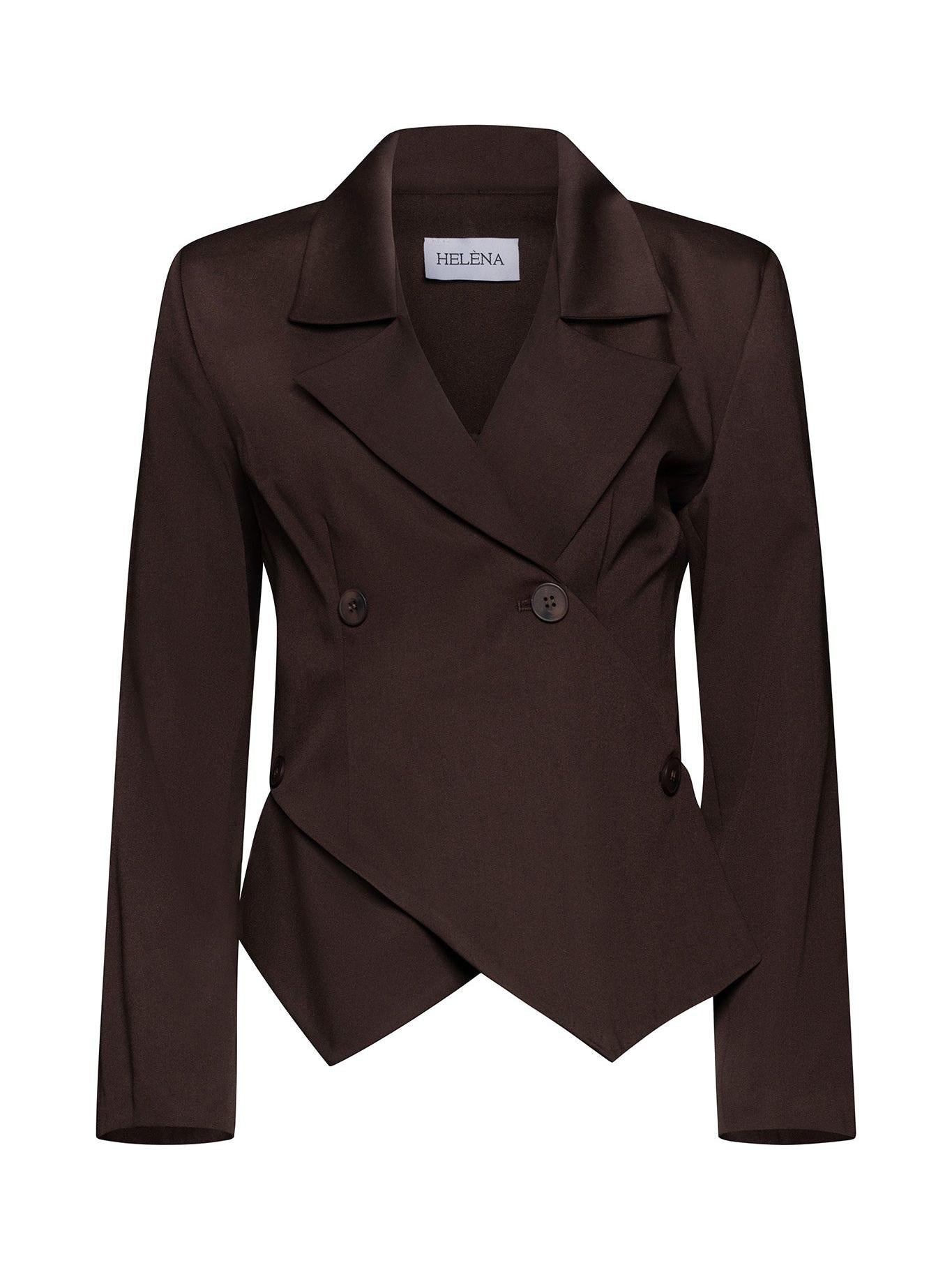 Модельт е изработен от висококачествена вискоза. Сако с втален силует, който елегантно подчертава талията. Модел с фин маншет, асиметрично, двуредно закопчаване, което придава акцент и maka актуалните подплатени рамене. В зависимост от съчетанието, може да бъде завършек на Вашата елегантна, стрийт или вечерна, парти визия.