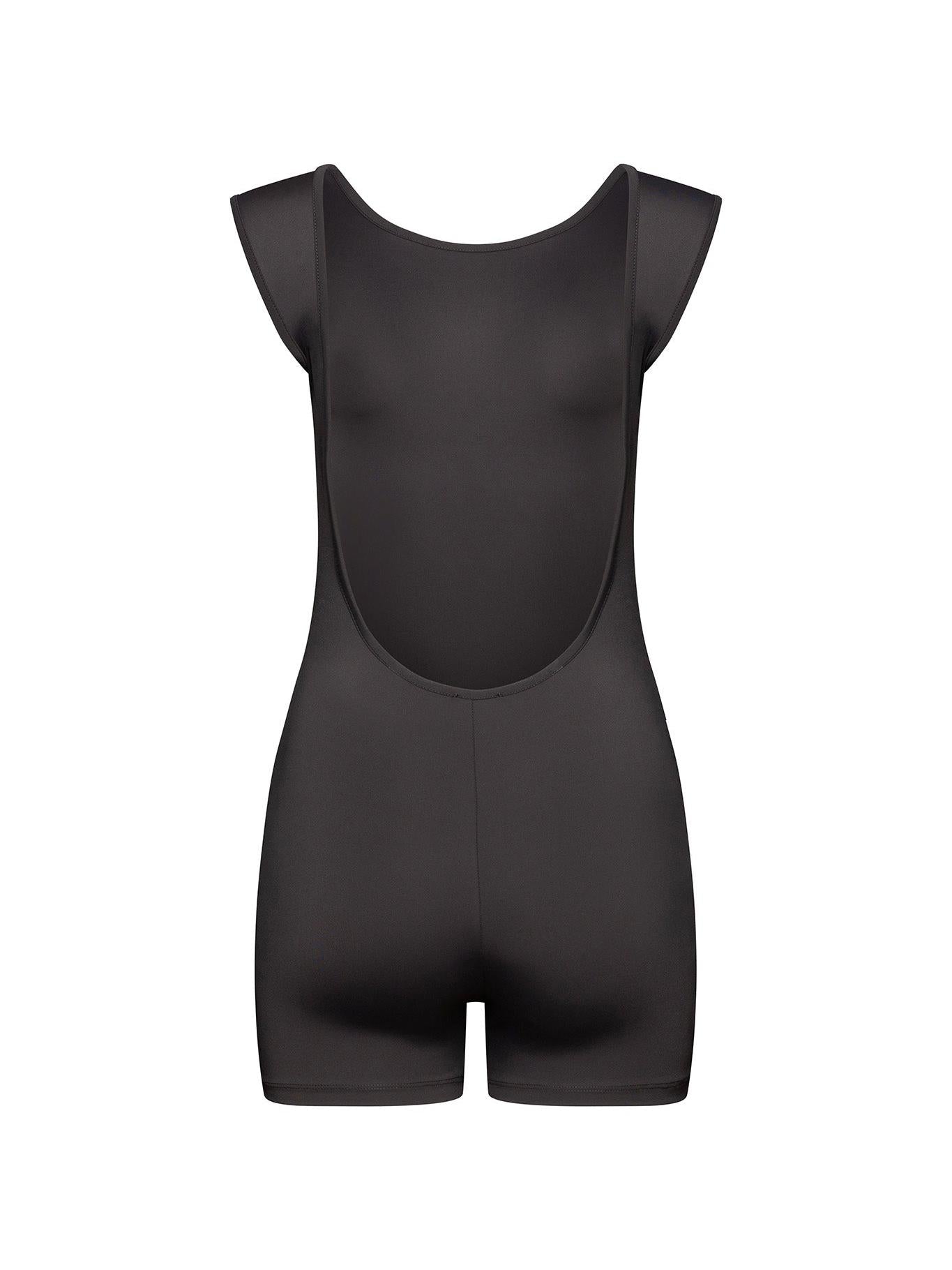 Моделът е изработен от висококачествена “body-shape” дишаща материя. Къс гащеризон, оформящ женствено, извивките на тялото с дълбоко изрязан гръб. Комфортно решение за Вашия спорт или стрийт визия в съчетание със сако "Série Nº7" и кубинки.